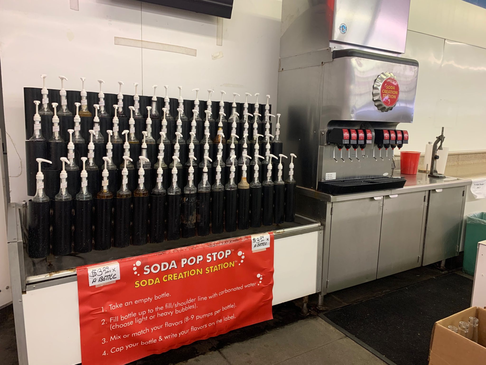 At the back of the store, there is even a make your own “soda bar” — where I kept coming up with horrible soda ideas just to see Kevin’s reaction. I personally don’t see what’s wrong with the marshmallow, banana and maple combo?
