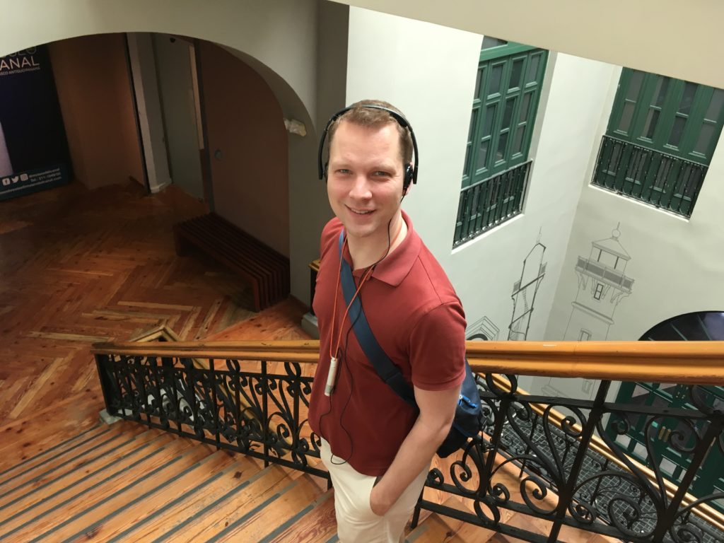 Kevin chats on FaceTime with my mom at the Miraflores Locks at the Panama Canal.