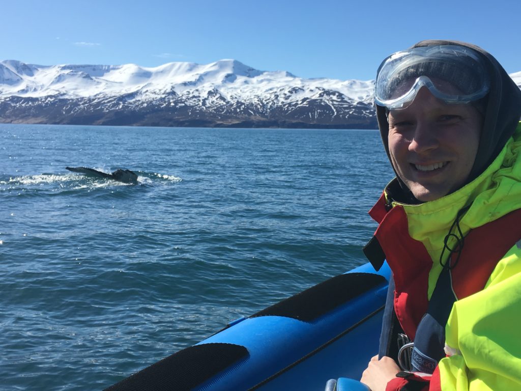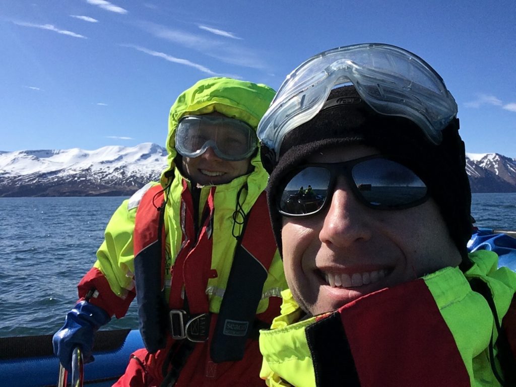 After breakfast, visit the town of Húsavík, often referred to as “The Whale Spotting Capital of the World.” Húsavík was the first place in Iceland to offer successful whale watching cruises. The Husavik Whale Museum is an educational information center on marine wildlife. The museum re-creates whale body structures from actual skeletons of beached whales (giving a sense of just how big they really are). Plus, the museum has free coffee inside (bonus!). We spent 2 hours at the museum before hopping on the 12:30 PM speed boat puffin and whale watching tour with Gentle Giants.