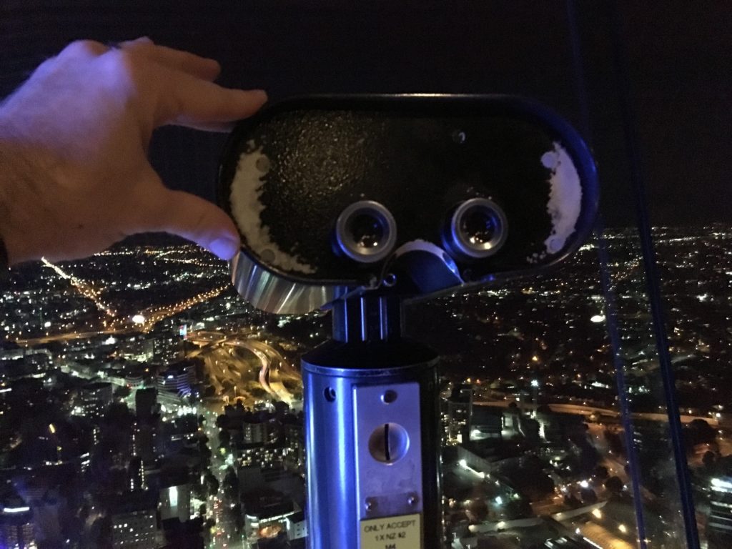 We recommend showing up about an hour before your dinner reservation to walk around the Sky Tower viewing platform. The elevator ride whisks you to the top in seconds. We did several laps around the room, and played the fun game of guessing where we walked during the day.