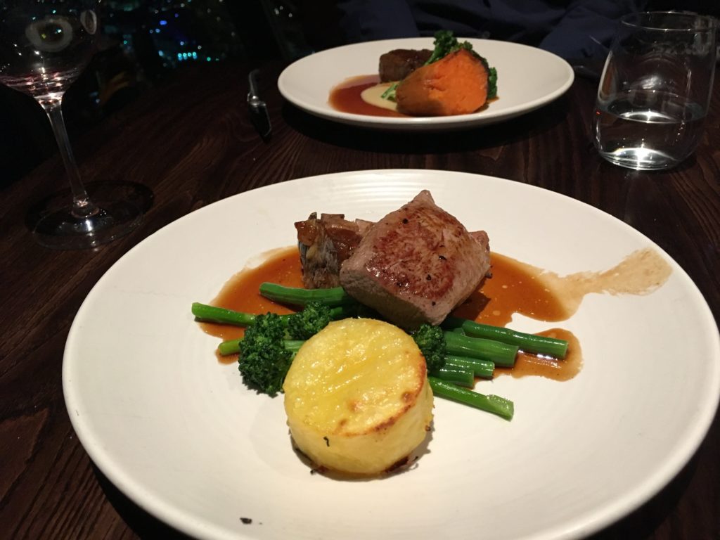 We headed to our dinner reservation at Orbit, which is a revolving restaurant overlooking the entire city. Kevin of course ordered the steak, while I had the New Zealand lamb… Clearly, I wasn’t feeling guilty (YET!) since we didn’t leave the center of Auckland.
