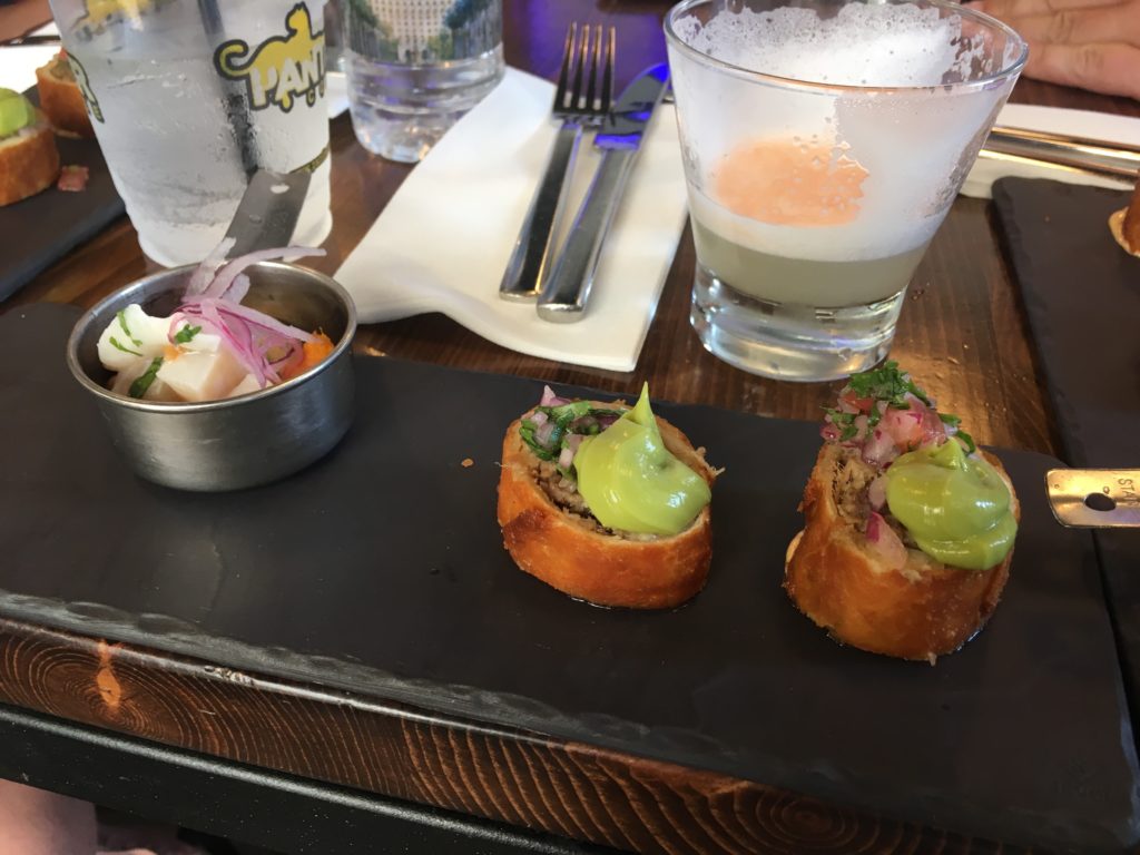 Even with all the art, we got plenty to eat. Among my favorite stops was at GK Bistronomie, where we had Mahimahi ceviche and Peruvian pork rolls. It was also this stop where we had a Pisco Sour (well worth the $5 extra) and the stop where Kevin accidentally spilled his entire glass of water on a German guy’s crotch! It will be a story the family will never forget I’m sure.