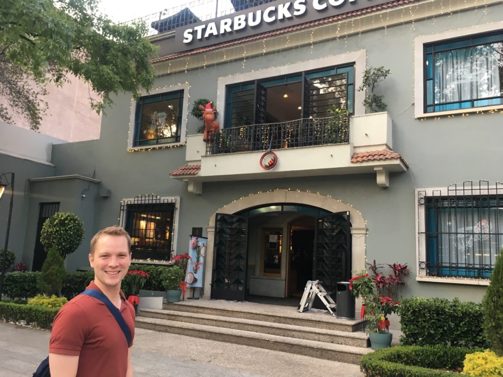 - 6 PM, Coffee shop time. Fancy Starbucks in Polanco. Kevin is in heaven.