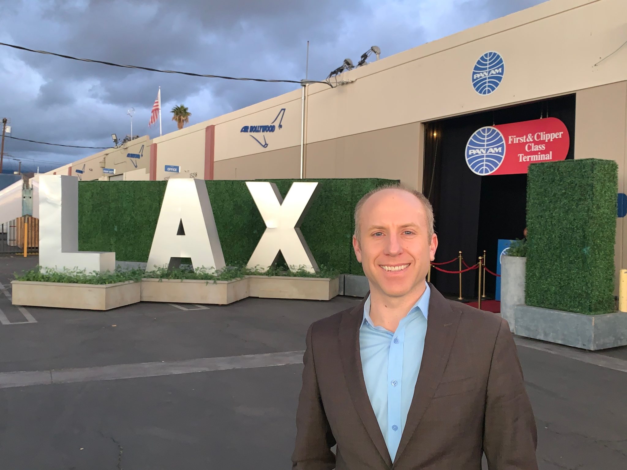 Kevin’s reaction told me everything, “Oh, wow… This looks exciting. What is it?” Clearly, I need to do a better job on the gift set up! The full experience takes about 5 hours from start to finish. And let me add, you don’t actually take off on an airplane. It’s completely recreated on the ground at Air Hollywood, a soundstage that serves as the backdrop for nearly every film and TV show that takes place in an airplane or airport. If you saw Quentin Tarantino’s Once Upon a Time… in Hollywood, it was the plane that Leonardo DiCaprio’s character used. Were you a fan of the TV show Lost? They filmed the show’s infamous plane crash scene here. And last but not least, Bridesmaids filmed one of my favorite movie lines here, which I CLEARLY had to re-enact for Kevin (several times). And that I was “READY… to paaarty!”