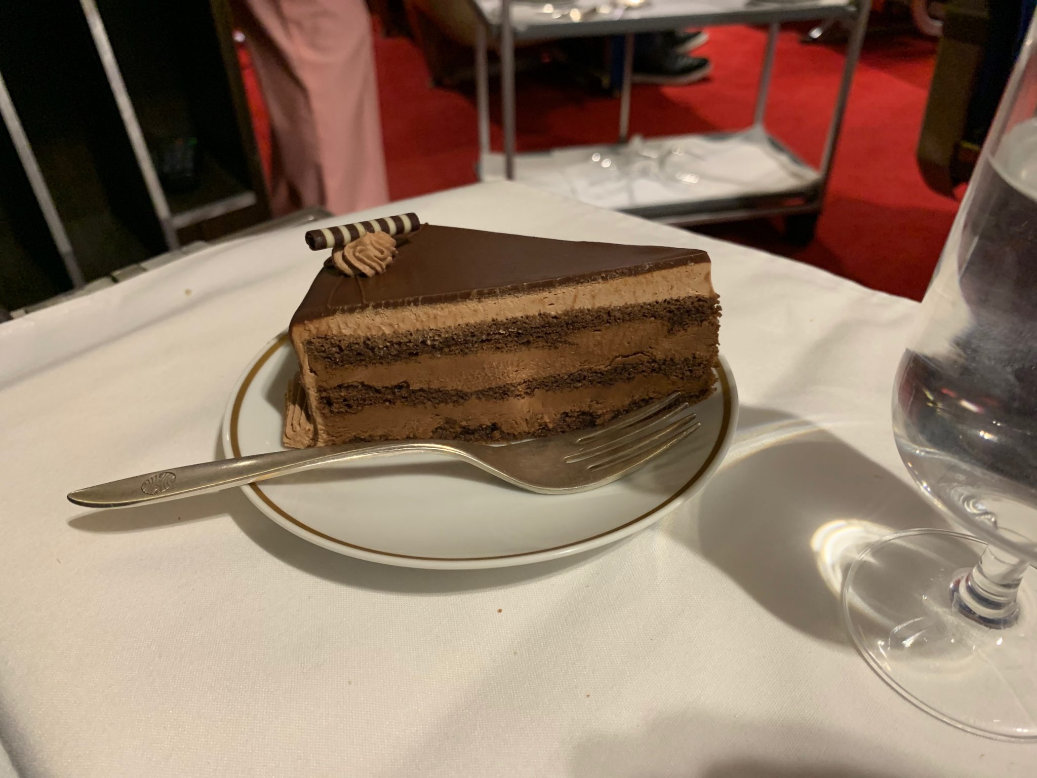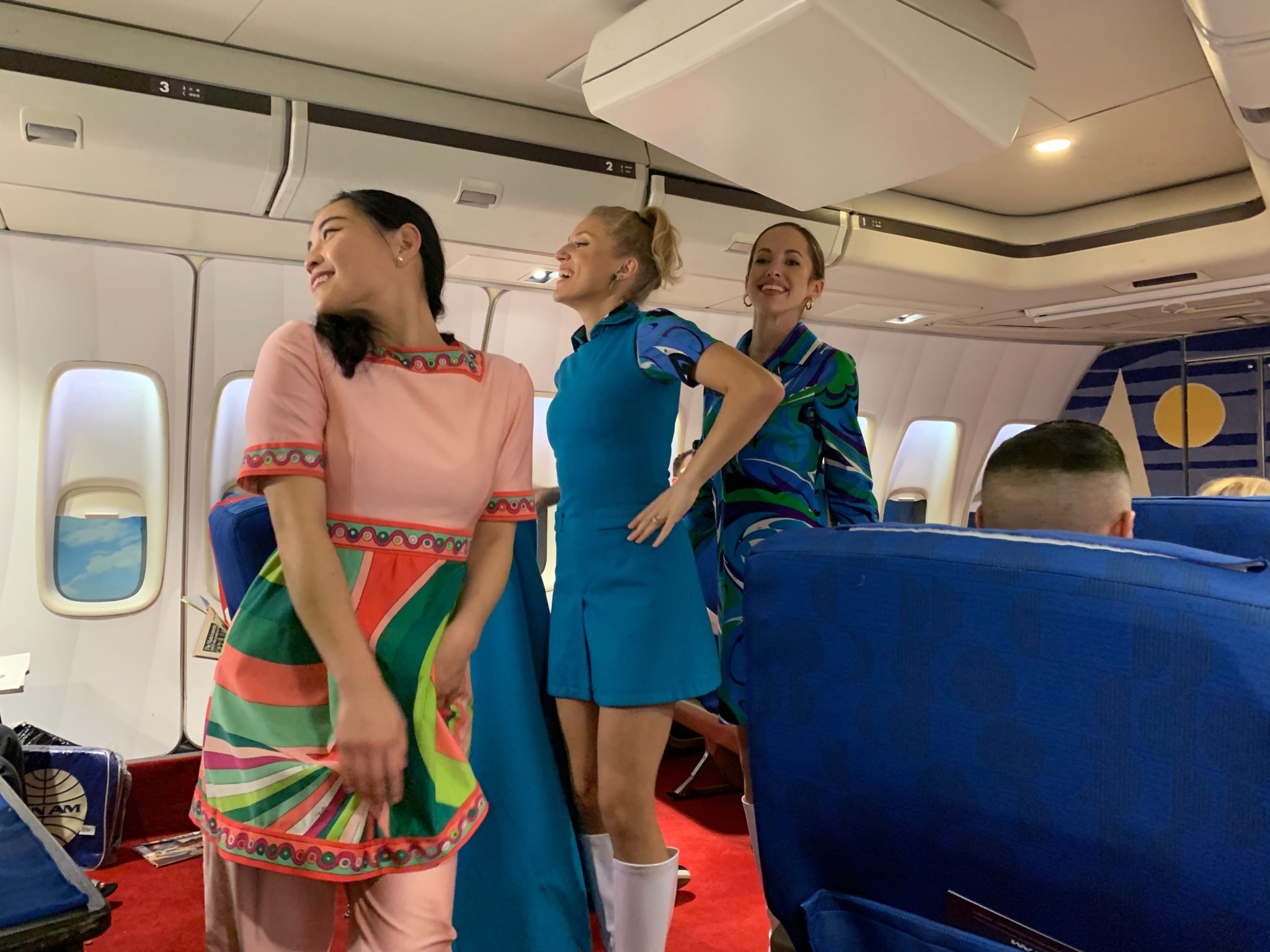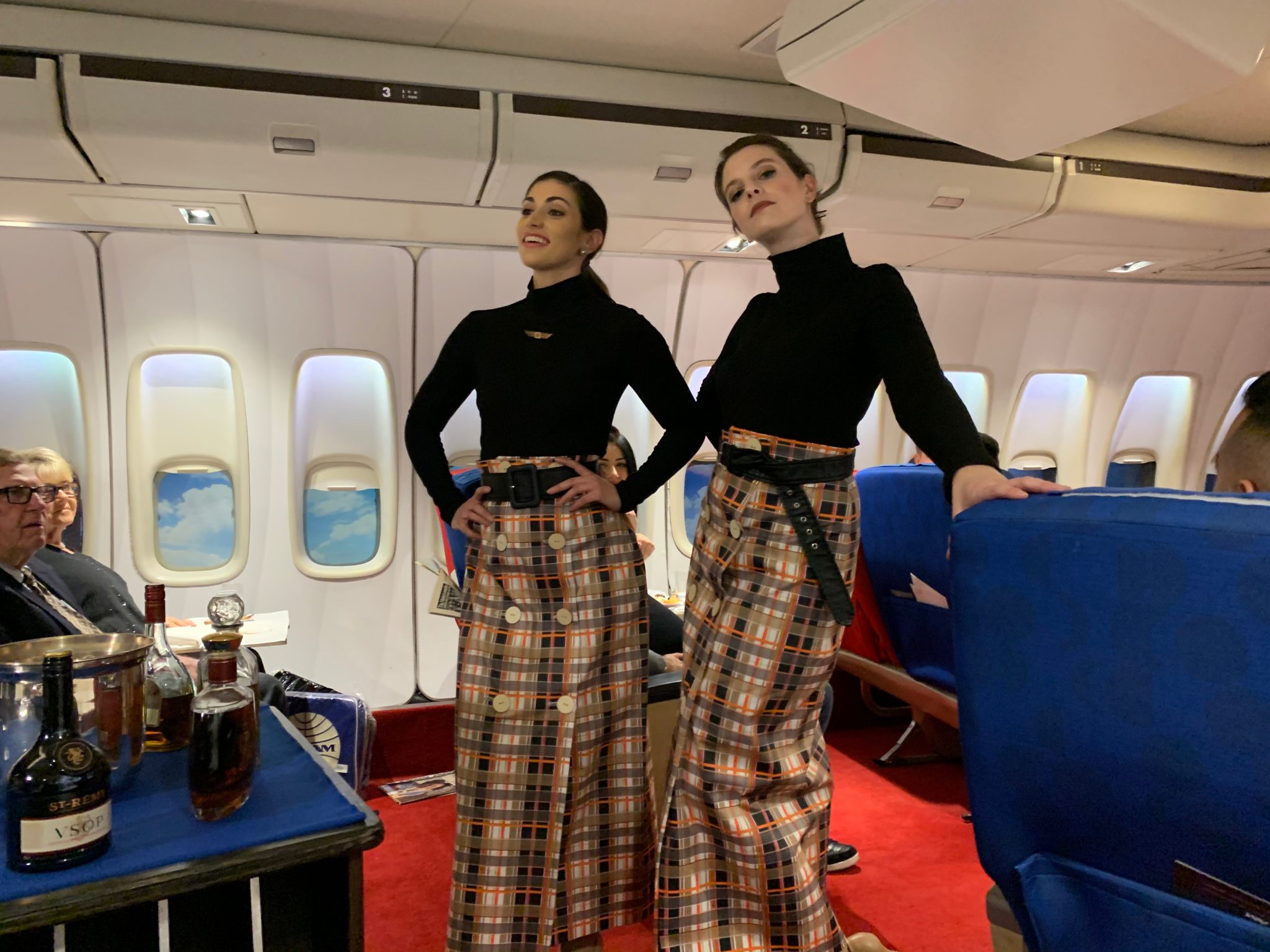As we were wrapping up dessert, the captain came on and announced our on-flight entertainment would include a live fashion show featuring a variety of flight attendant uniforms through the decades. We could tell the crew really enjoyed this part as they pursed their lips and walked the catwalk down the aisle.