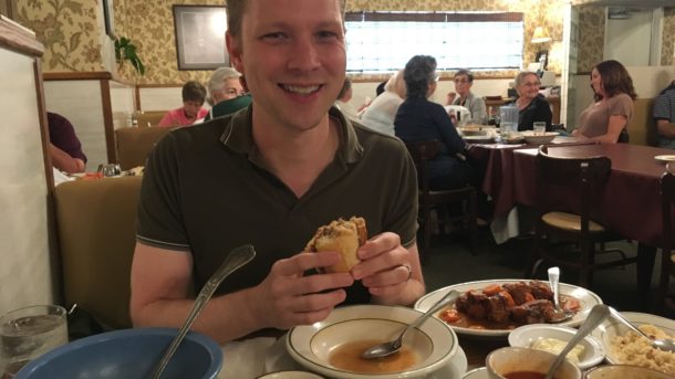Kevin is excited to chow down!