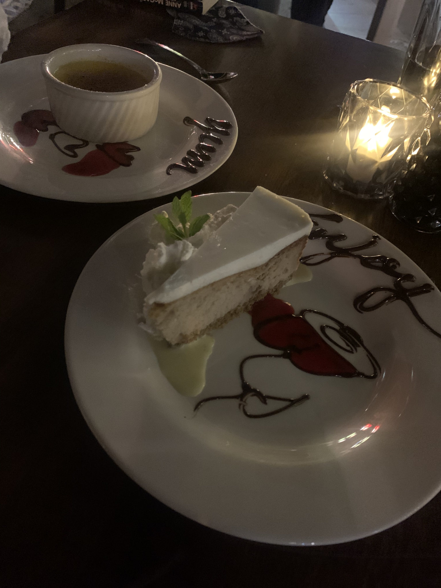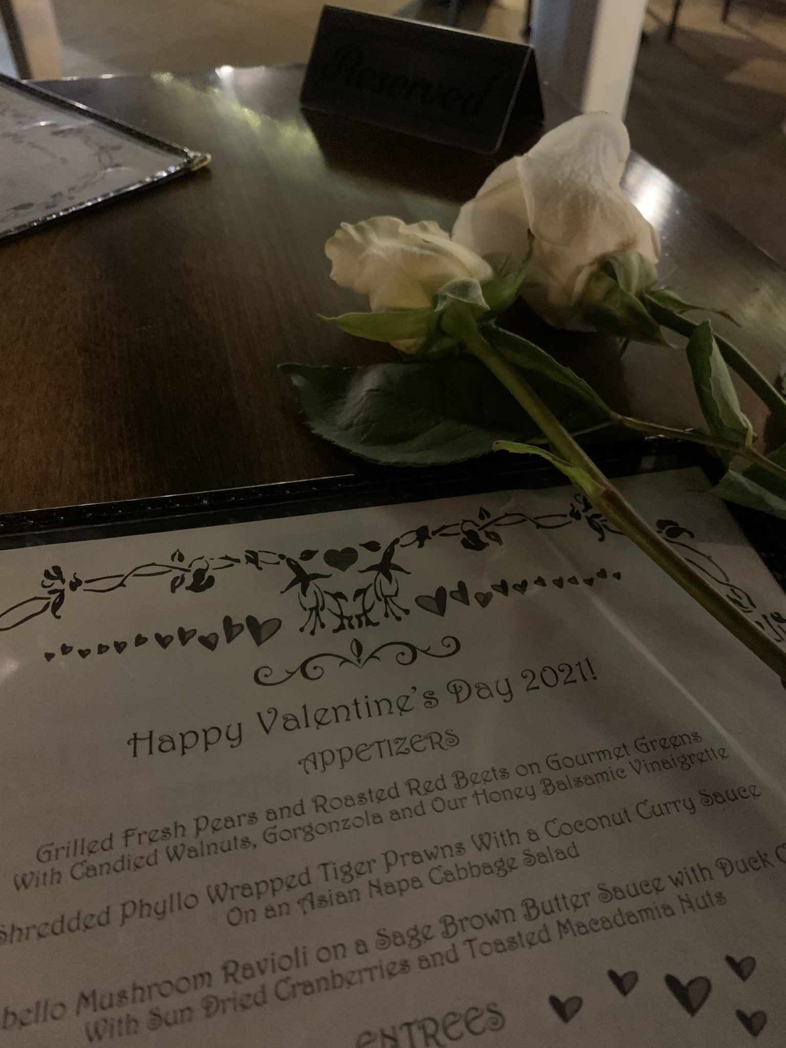 Enjoying the warmth of the heat lamp on the parklet dining at Opal. On Valentine’s Day they gave us roses. Such a nice touch.