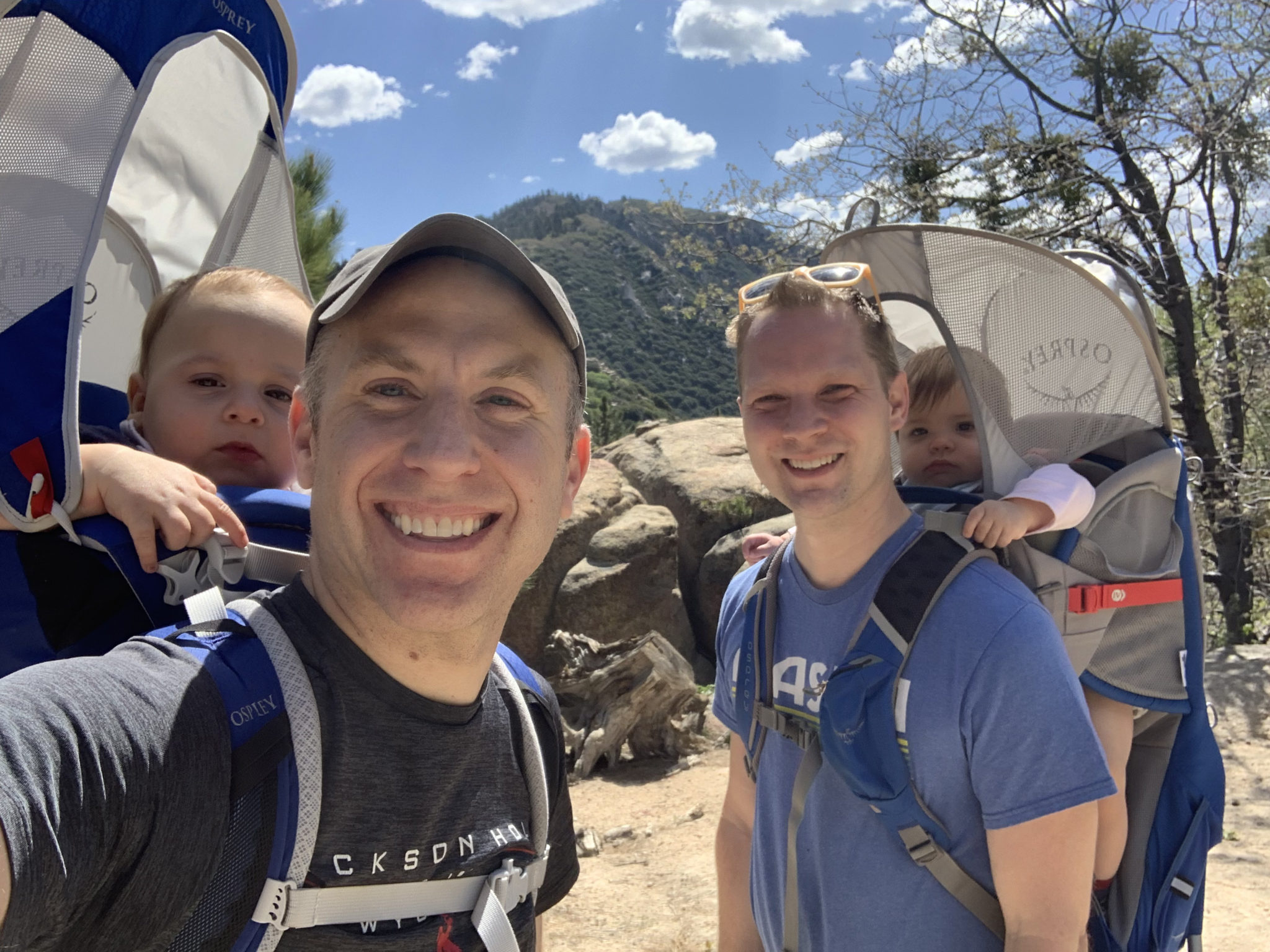 Our baby twins are ready to go! Inside our cute Lake Arrowhead cabin.