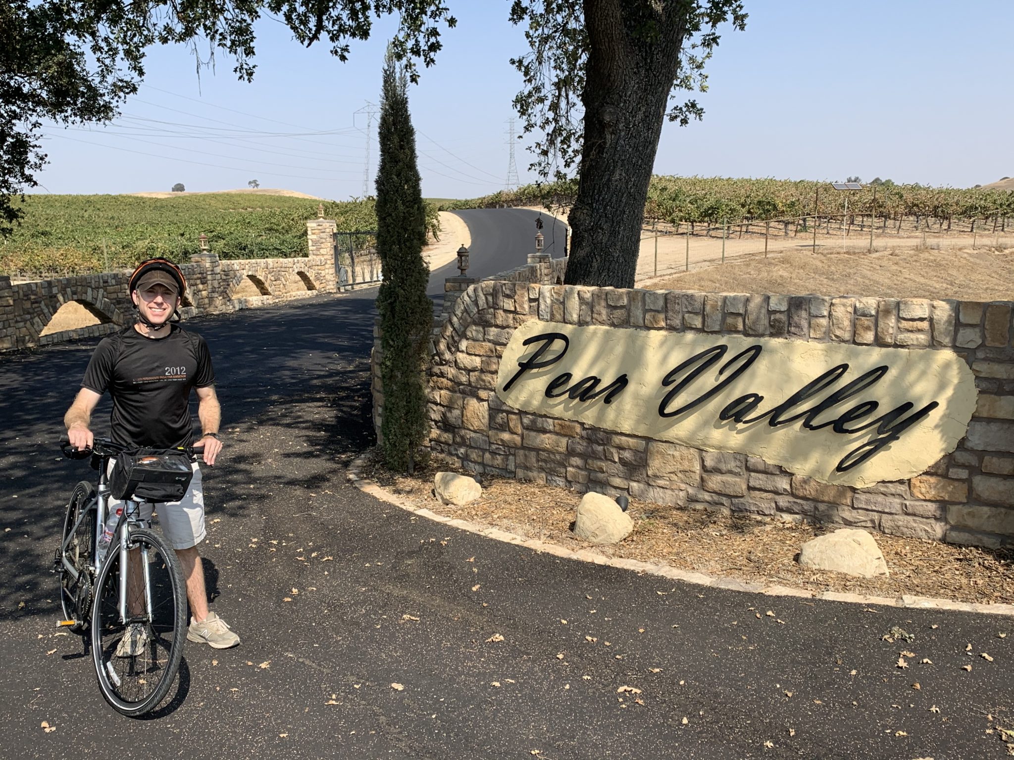 After enjoying some coffee and relaxation, you’ll be ready to hit Union Road. This bike-friendly country road is perfect for riding. This will be your longest stretch of cycling during the tour as you head out about 5.6 miles to Pear Valley Vineyard. We loved the entry to Pear Valley Vineyards. As you ride through the gates, you’ll be surrounded by fields of vineyards as far as the eye can see on both sides of the road.