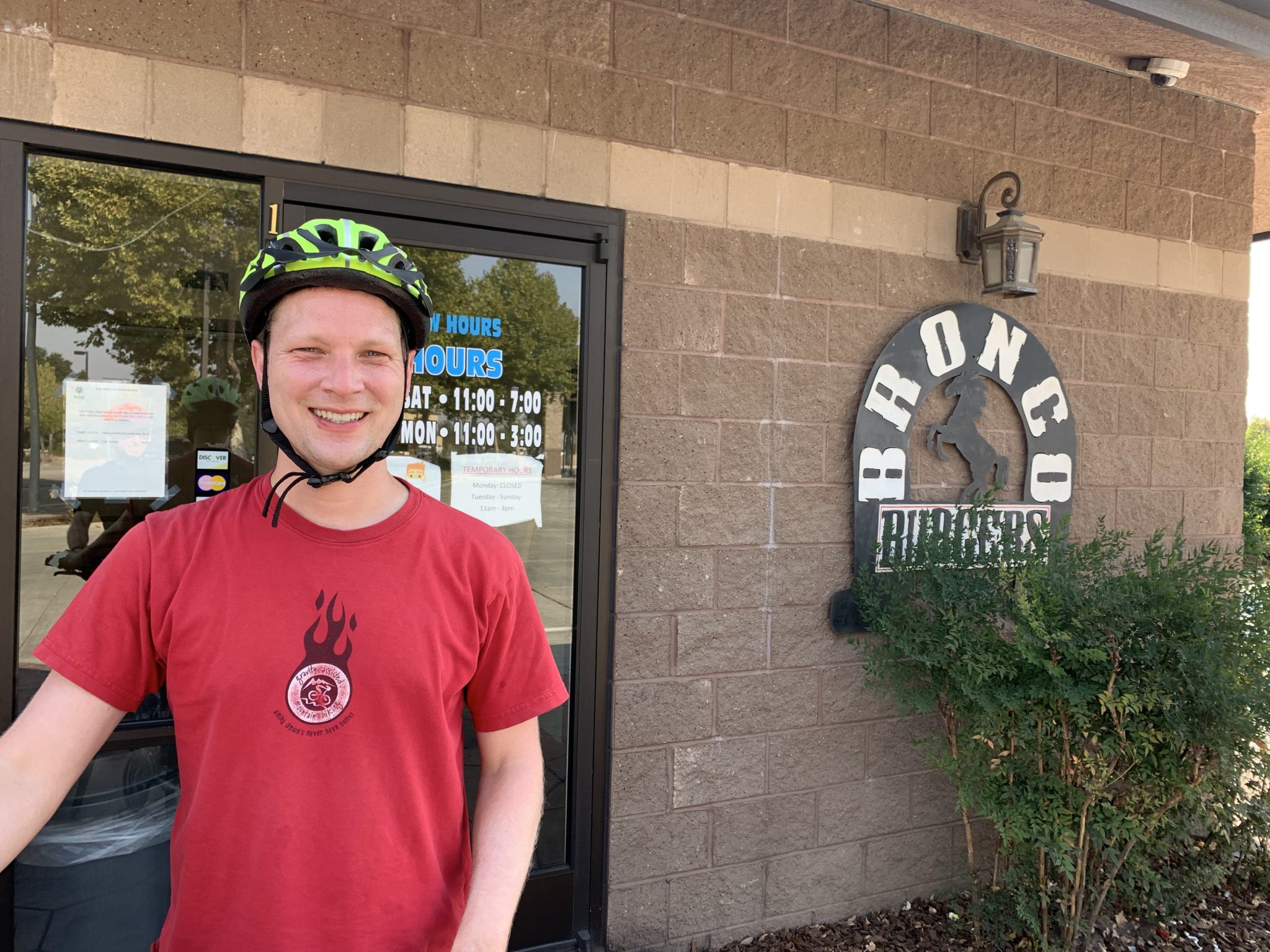 Biking to Bronco Burger: 4 miles or 10 minutes of cycling
