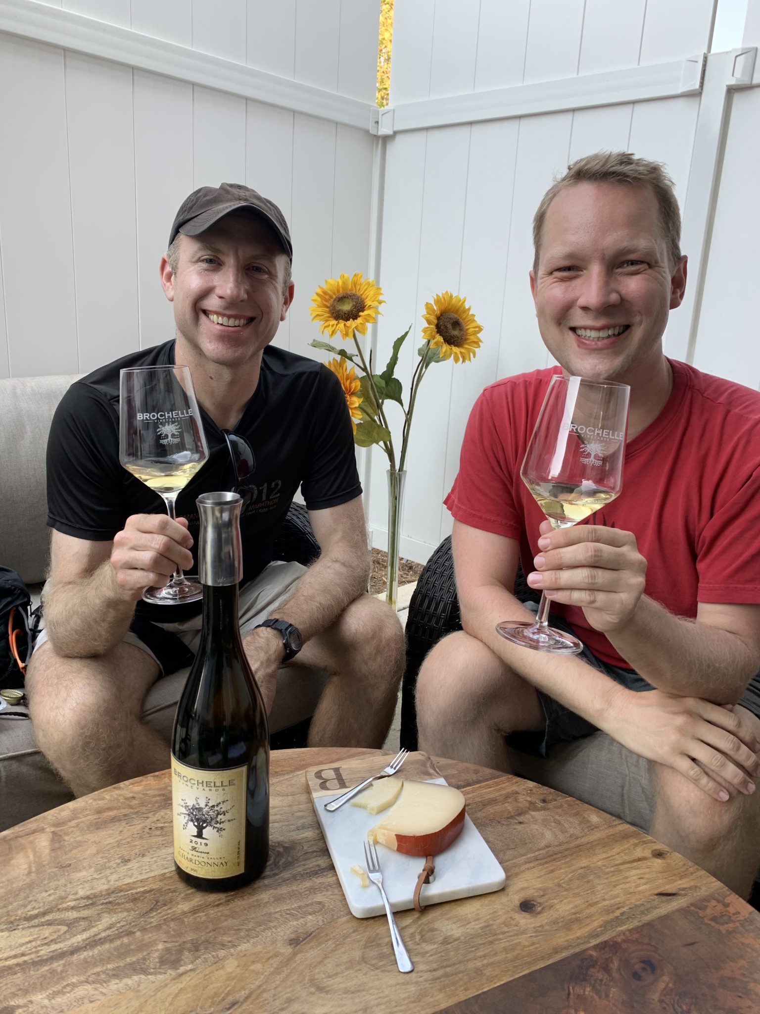 We grabbed a seat outdoors at one of their large wooden tables and shared their classic 6 tastings for a $20 tasting fee. You’re able to select which wines you’d like to sample, and we mostly stuck with the chilled whites since it was such a warm day. Don’t forget to hydrate as well. We were really thirsty — clearly changing a bike tire is draining. We must have drank about 5 pitchers of water alone here. Oh, and did I mention, they have a nice bathroom?