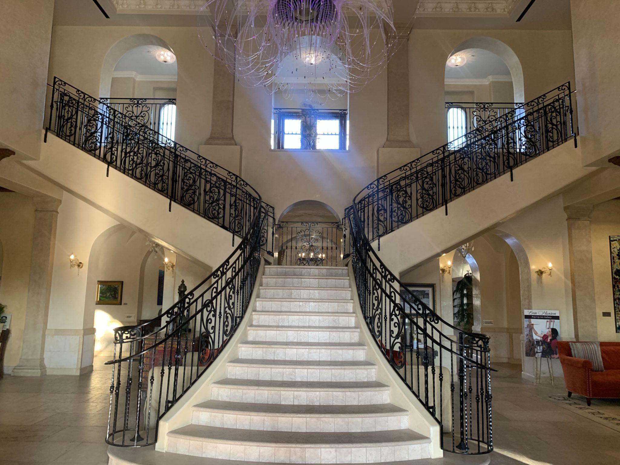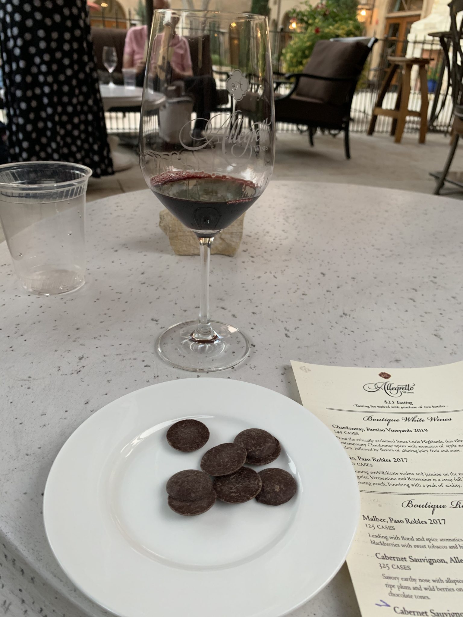 Allegretto Vineyard Resort is the vision of Douglas Ayres, who was awed by the beauty of Paso Robles while passing through. He was so inspired by his visit that he purchased a 17-acre premium cabernet sauvignon vineyard. This was followed by the purchase of a 20-acre pasture where he planted a wide range of grapes from Viognier to Cabernet Sauvignon. He also constructed a hotel on the property. We were amazed just wandering the grounds.