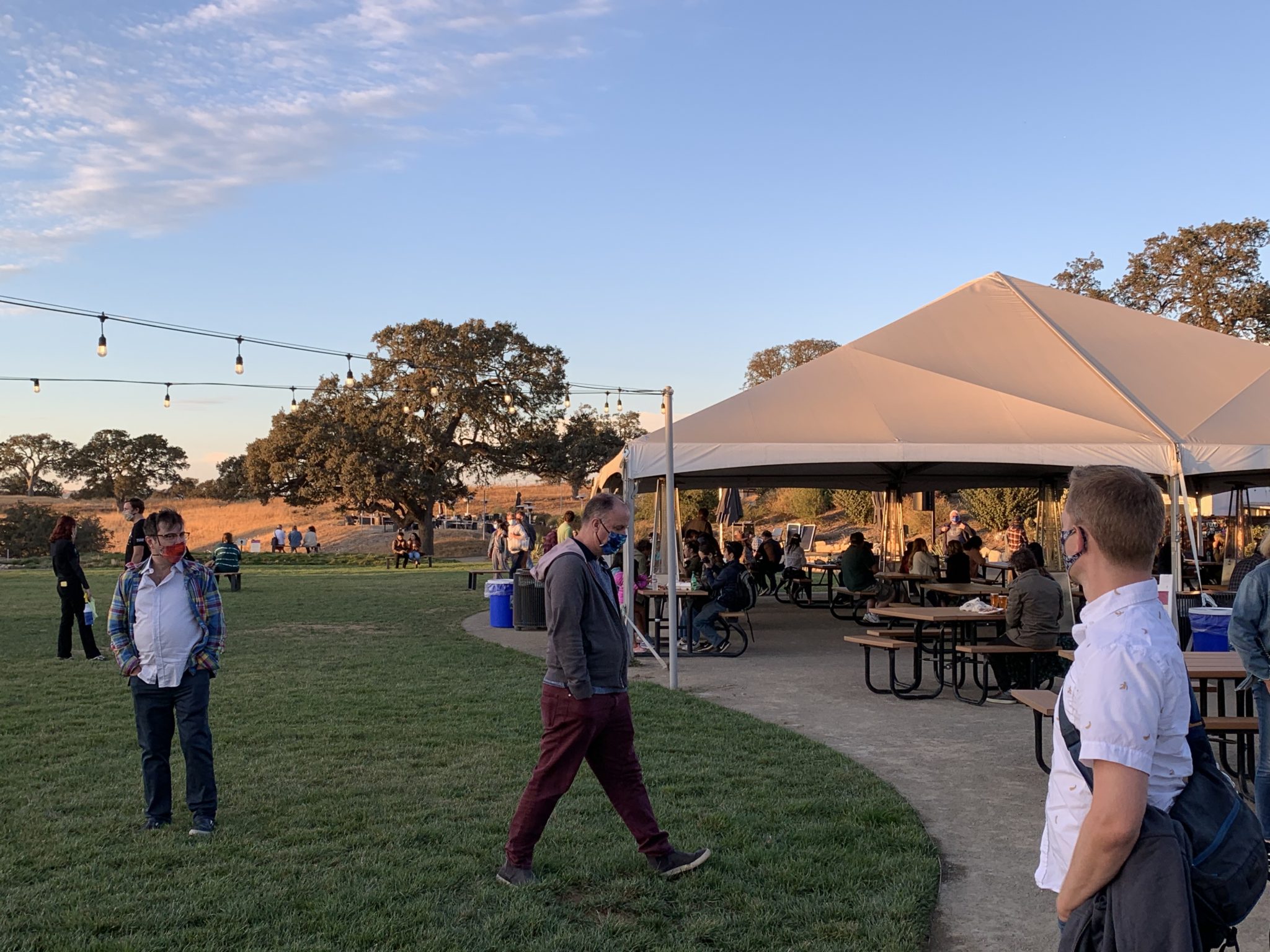 The organizers are taking all precautions with COVID, including timed entry, mandatory temperature checks, required face coverings, limited groups (with a maximum of 6 guests) and enforced social distancing. Not only that, but there are also 15 acres of land to wander — including one-way paths to cut down on guest interactions. After checking in, we were thrilled to see such a festive environment. There was live music as well as several food trucks offering everything from Mexican to Italian. And of course, this is wine country and there has to be some good wine on hand.