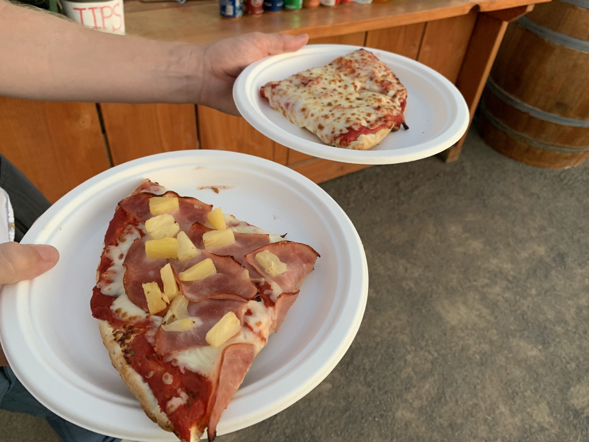 We made our way back towards the VIP section — stopping only to grab a few slices of pizza to snack on ($5 a slice for cheese and $6 for a slice with toppings). All this walking was making us hungry.