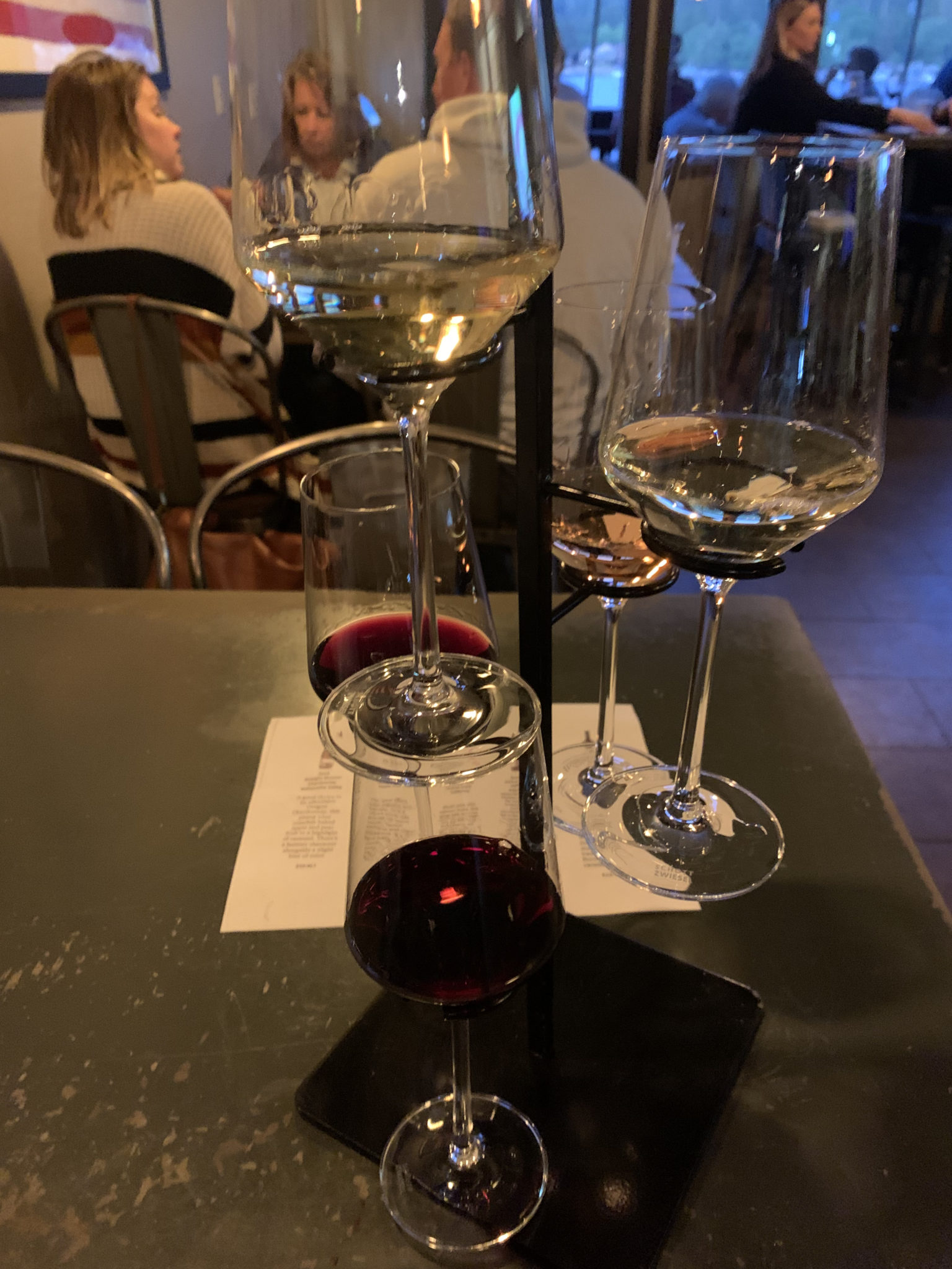 Enjoying a flight of wine on our mountain getaway in Lake Arrowhead. This is one of our favorite things to do.