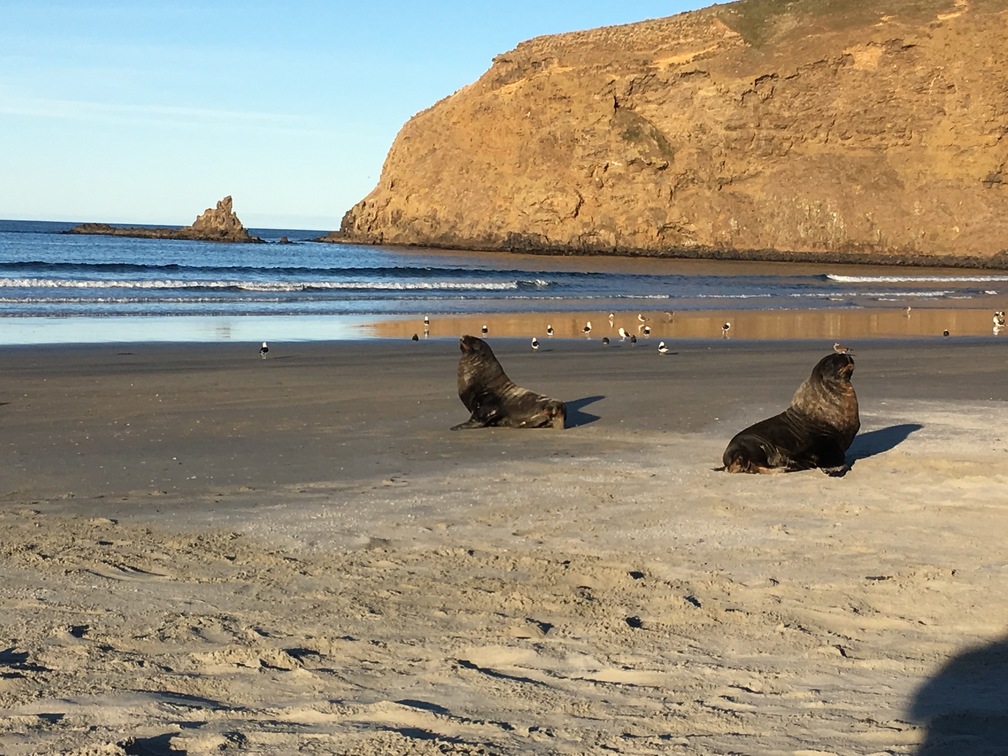 After checking out the penguins, we watched the Hooker sea lions lounge around the beach and at times sprint in our direction. These are the rarest of the world’s five species and are making a comeback to mainland New Zealand after being eliminated by Maori hunting centuries ago. Today, they exist primarily in this area and the Catlins (an area in the southeastern corner of the South Island). These are some curious creatures and soon enough one came flopping towards us. And it was an all out sprint! More than likely, he just wanted to play. But they can grow up to nearly 10 feet in length and weigh over 880 lbs. So yeah, guess who’s going to win in this wrestling match?