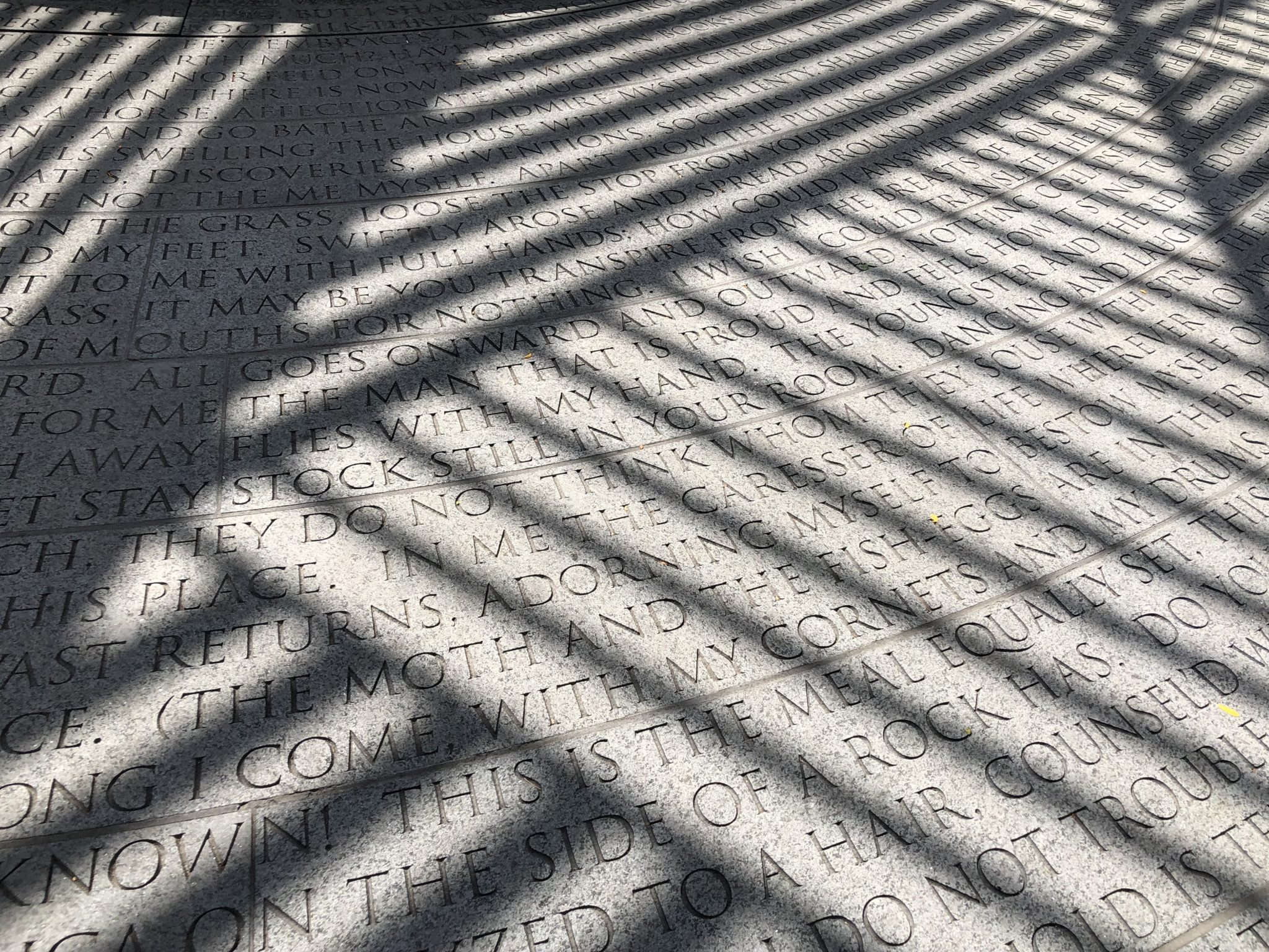 It’s a peaceful spot in the craziness of New York. A poem by Walt Whitman spirals the pavement inside. However, you’ll have a hard time figuring out where it begins and ends. This was intentional — as a representation of the AIDS epidemic.