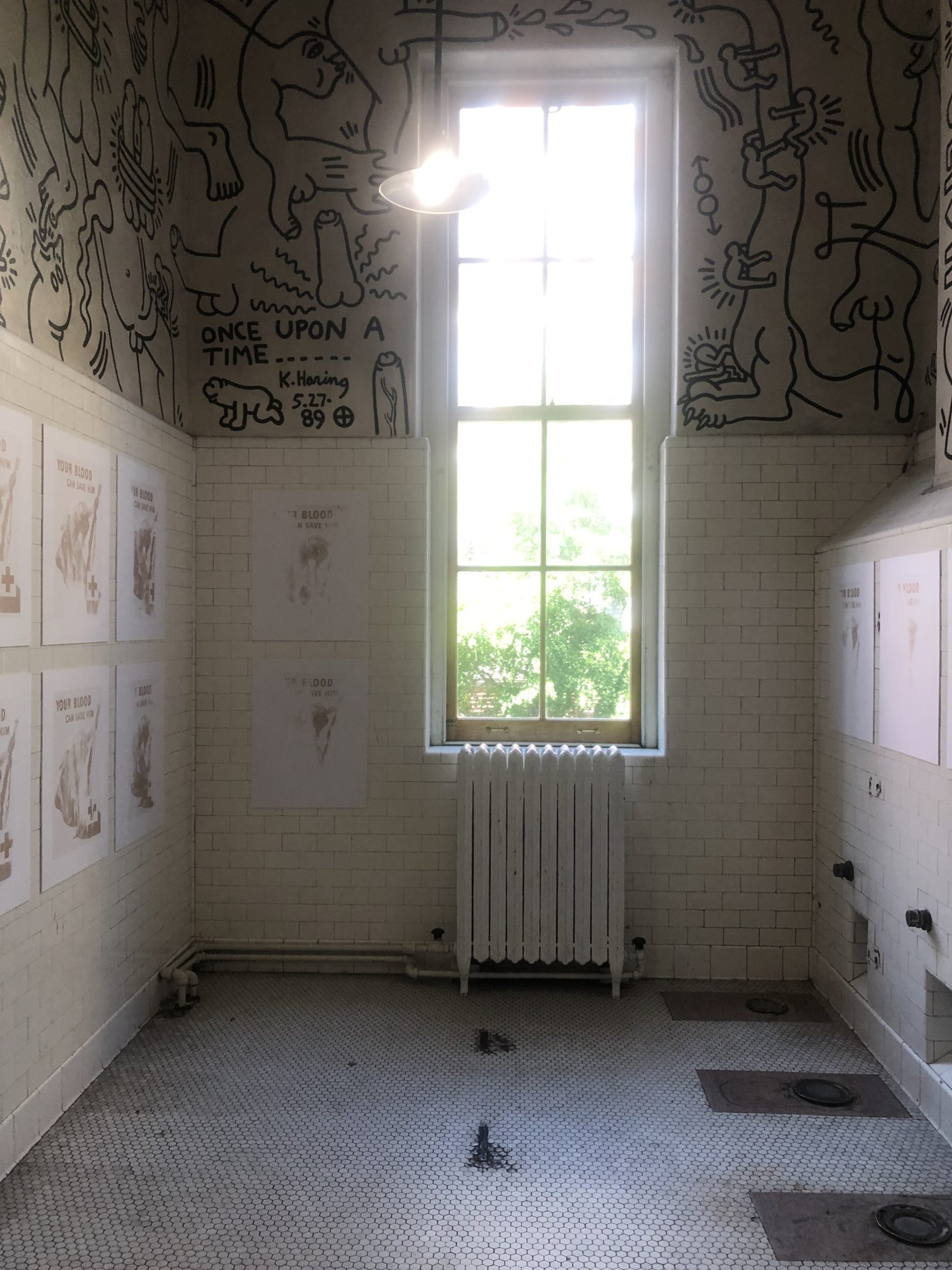 Today, more than 400 community groups come here to meet and find support — including health and wellness programs; arts, entertainment and cultural events; recovery, parenthood and family support services. Michael led us to a hidden spot in the center that probably even most native New Yorkers don’t know about. In the building’s second-floor men’s bathroom, artist Keith Haring painted his last public commissioned piece of art.