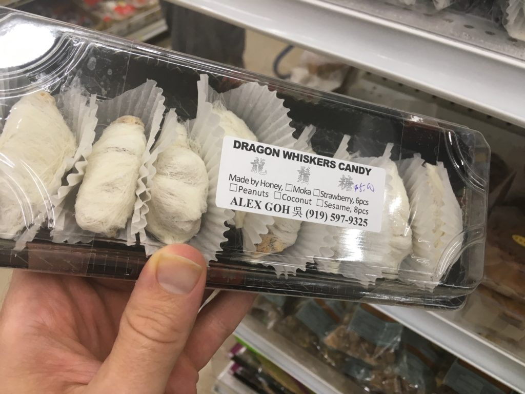 It was initially created in China, but soon spread in popularity and became a regional delicacy in other parts of Asia. The one we purchased had peanuts and honey inside. It’s really chewy, almost like cotton candy. Or as I described it to Kevin (since he totally passed on eating it!), sort of felt like what eating a butterfly larvae would be like. Okay, maybe this is the reason why he passed on it? I’m not sure. Would I get it again? Definitely not, but it was an experience!