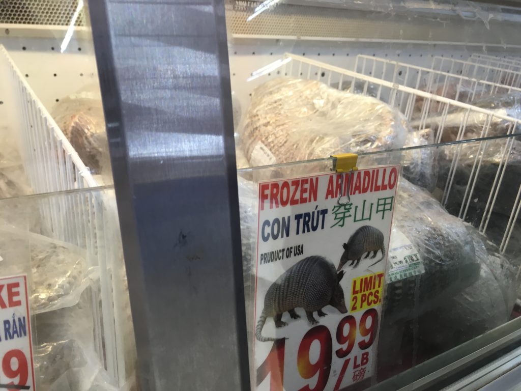 You’ll find live turtles to consume (which made me think of my pet growing up!), rattlesnakes and armadillo just to name a few.