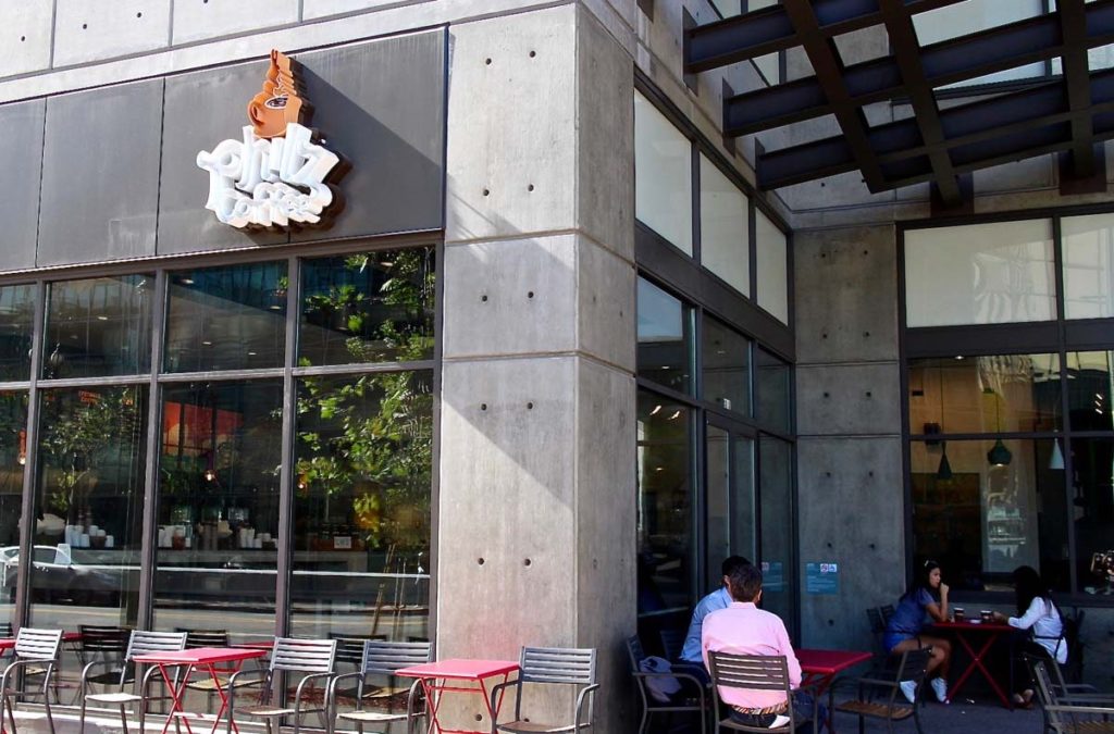 The Exchange explores the multi-cultural flavors of urban LA through an Israeli lens. We suggest ordering the sampler, which includes several dips, yogurt, olives, a fresh salad and some of the best hummus we’ve ever eaten in LA. We also got the breakfast burrito, which paired really well and was easy to share. After downing the food, we were just steps from our favorite coffee shop, Philz!