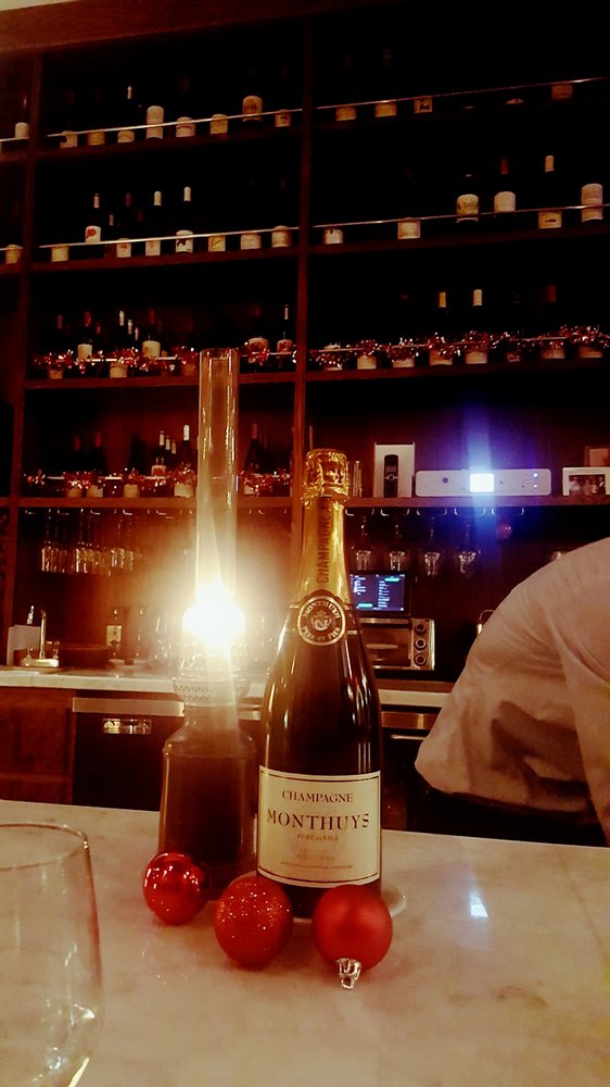 Interior of the very french wine bar/cafe.