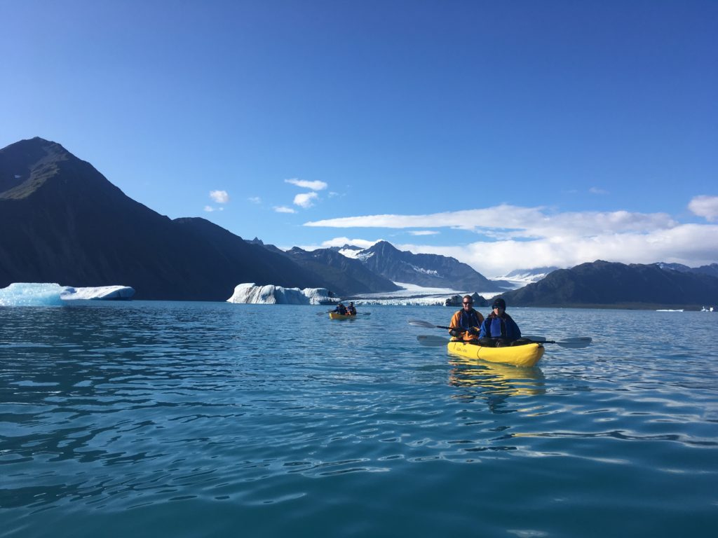 The 3.5 hour trip is definitely a workout. Though, this includes a 45-minute ride to and from the kayaking site (so you won’t be paddling the entire time). Or you can just get the back seat of the tandem kayak and your partner won’t ever know if you’re paddling or not! Cost of the Bear Glacier kayaking adventure is $299 per person.