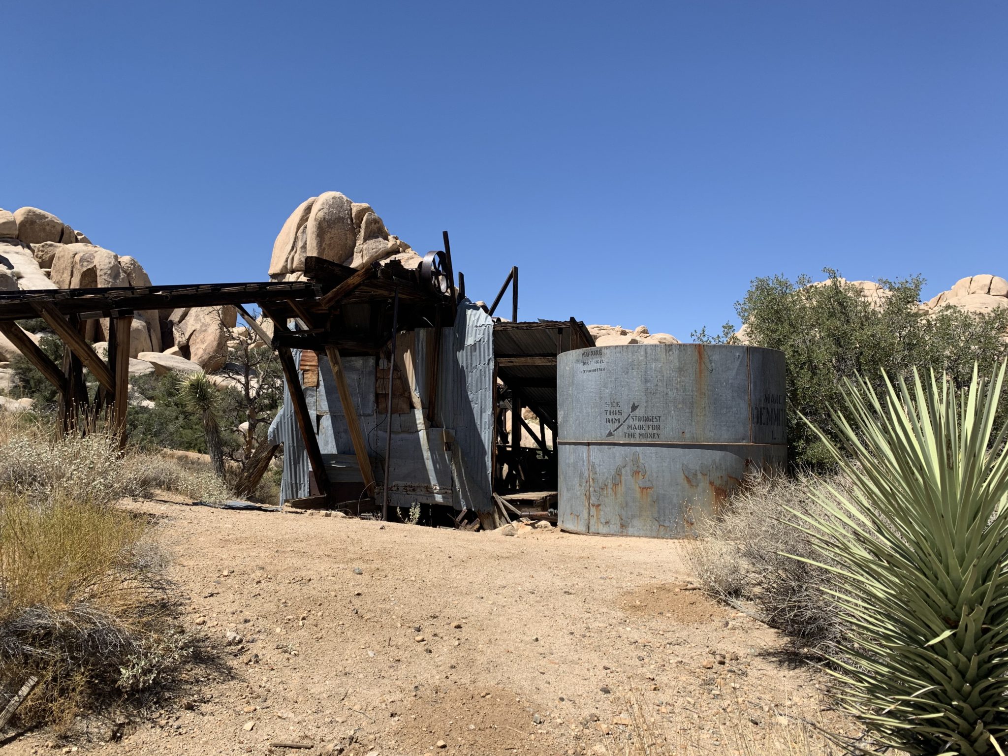 But it’s the story behind this trail that makes it one of Joshua Tree’s most unique hikes. The story goes that the owner of the Mill, Bill Keys, got in a battle with his neighbor over who controlled the road access to the mill. Long story short, Mr Keys shot his neighbor in a good o’l western shootout. He ended up getting convicted of murder and spent 5 years in San Quentin for his crime. Oopsy. Though, Keys claimed he was innocent. In fact, he even went as far as erecting a marker at the very spot of the gunfire claiming it was self-defense. Today, there is a replica of the marker (since vandals destroyed the original one). It is located about .8 miles into the trail. But it’s the eerie buildings in the middle of nowhere that makes this hike worth the quick journey. Imagine what life was like more than 100 years ago. Luckily today, you likely won’t find yourself in a wild west shootout (hopefully).