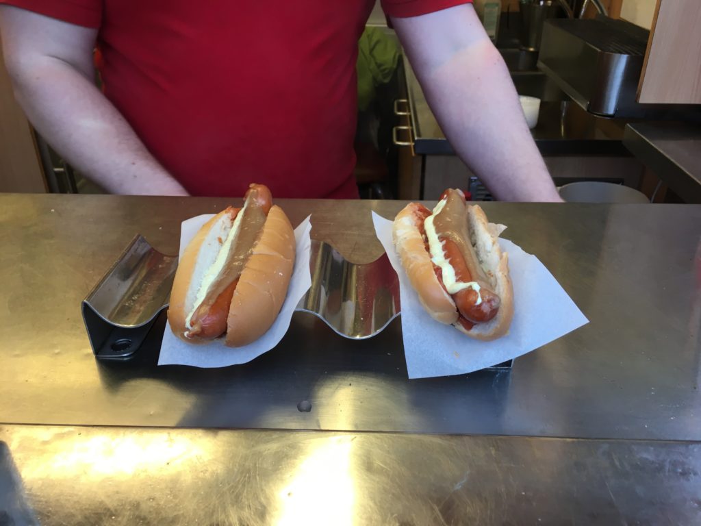Kevin gives the Icelandic hot dog 2 thumbs up. A cheap and filling meal.