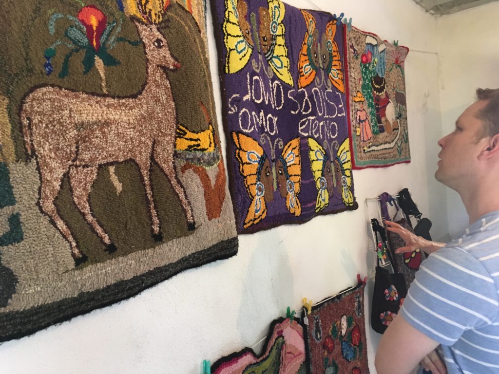 The tour has several stops and experiences – including a taste of cactus fruit, a language lesson in Otomi (native language) taught by an elder, taste of medicinal herbs (that are VERY strong), and finally a stop at the rug showroom with handwoven rugs made by the local women in the village. I can’t recommend this tour enough. I loved every second of it.